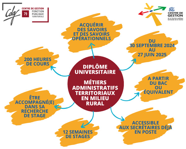 Fruit d’un partenariat inédit entre les Centres Départementaux de Gestion (CDG) des Deux-Sèvres et de la Vienne, les Associations des Maires, les Départements, l’Institut de Préparation à l’Administration Générale de Poitiers (IPAG) et la Région Nouvelle-Aquitaine, cette formation est créée pour répondre en priorité aux besoins de recrutements des communes de ces deux départements.