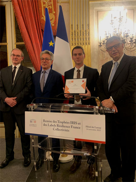 La cérémonie s’est déroulée mercredi 15 novembre 2023 à l’Hôtel de Lassay à Paris, en présence de Yaël Braun-Pivet, Présidente de l’Assemblée Nationale. Le Label pour la Ville de Niort a été remis au représentant de la direction de projet des Risques majeurs et sanitaires, Jean-Mathieu Lepage, par le Général d’Armée (2e section) Richard Lizurey, président du Haut comité français pour la résilience nationale et ancien directeur général de la Gendarmerie Nationale.