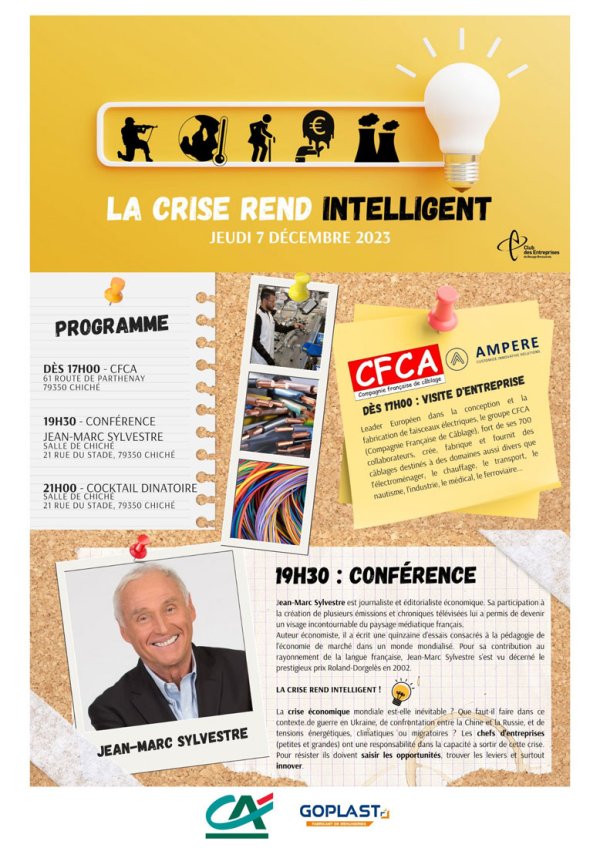 conférence animée par Jean-Marc Sylvestre sur le thème « La crise rend intelligent ». Comme à son habitude, la soirée se poursuivra par un cocktail dinatoire convivial, afin d’échanger entre adhérents du Club.